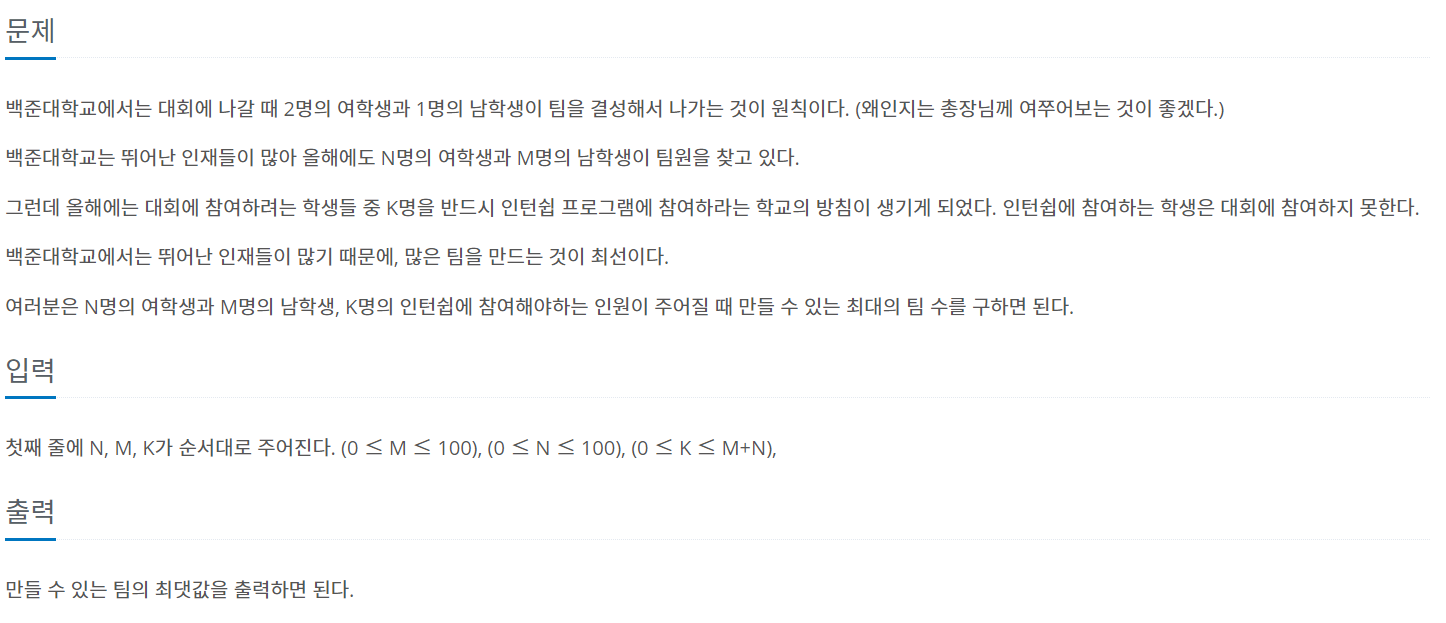 출력할때는 n/2 와 m 중 작은쪽을 출력해주면 되겠다.