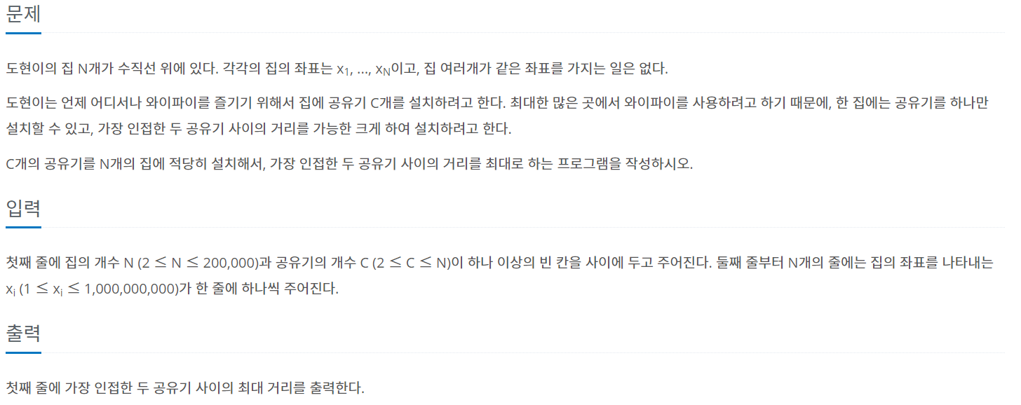 1. 임의 변수 mid 를 최대 거리로 사용했다.