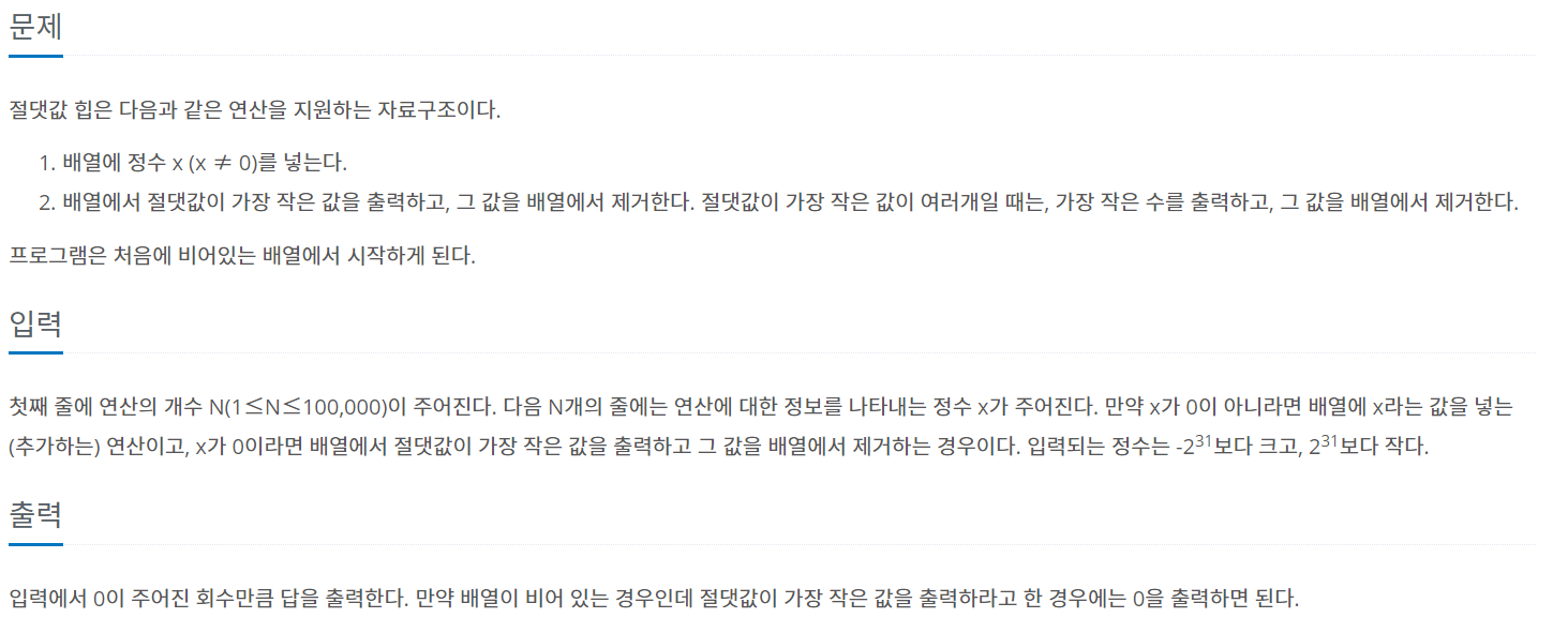 [백준 11286] 절댓값 힙 본문