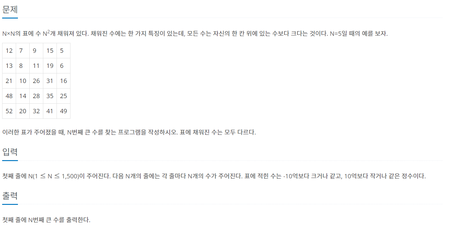 문제 설명대로 최대힙을 만들고 n번째까지 빼면서 출력했더니 시간초과가 났다.