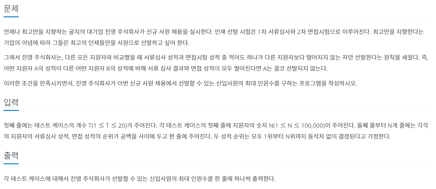 선택한 사원의 서류 점수, 면접 점수의 순위가 모두 다른 지원자의 서류 점수, 면접 점수의 순위보다 밀리지만 않으면