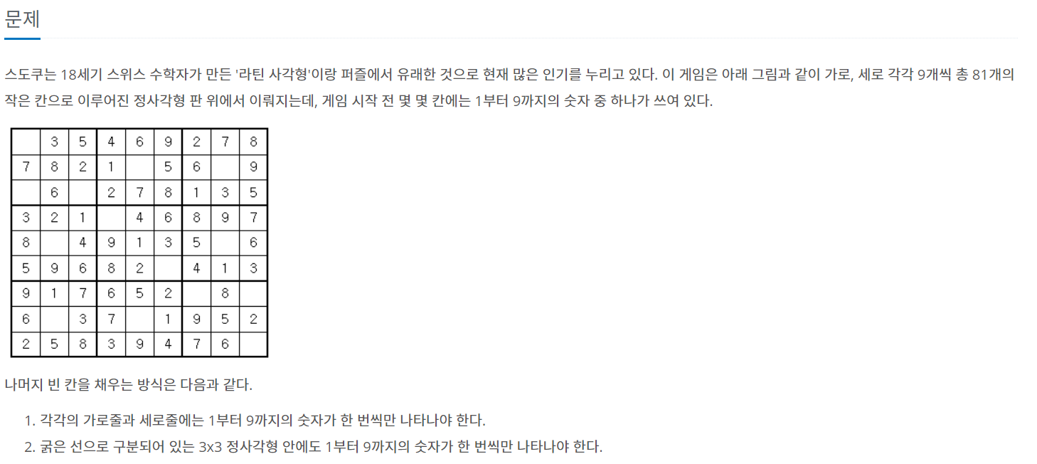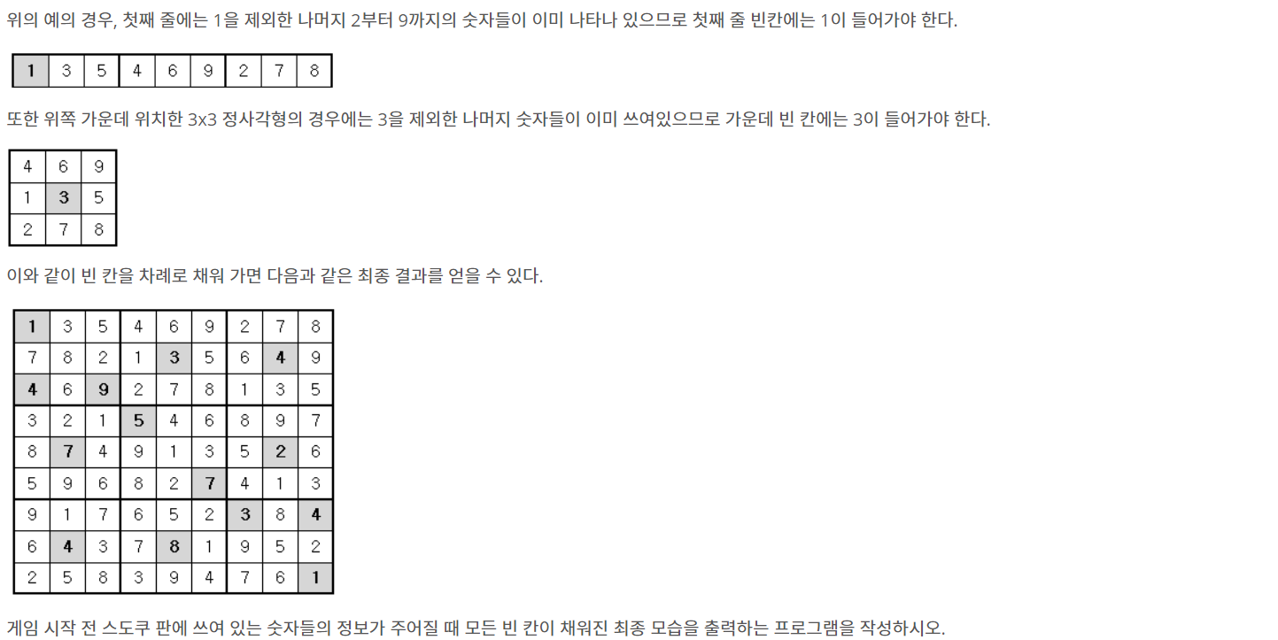 81칸 중에 비어있는 칸이 있다면 백트래킹으로 하나하나 채워간다.