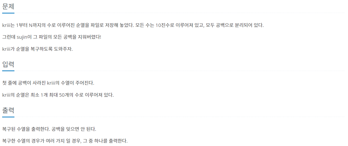 1. 수는 1부터 N까지로 구성되어 있으며 연속된 수열이 아니면 제대로 복구된 수열이 아니다.