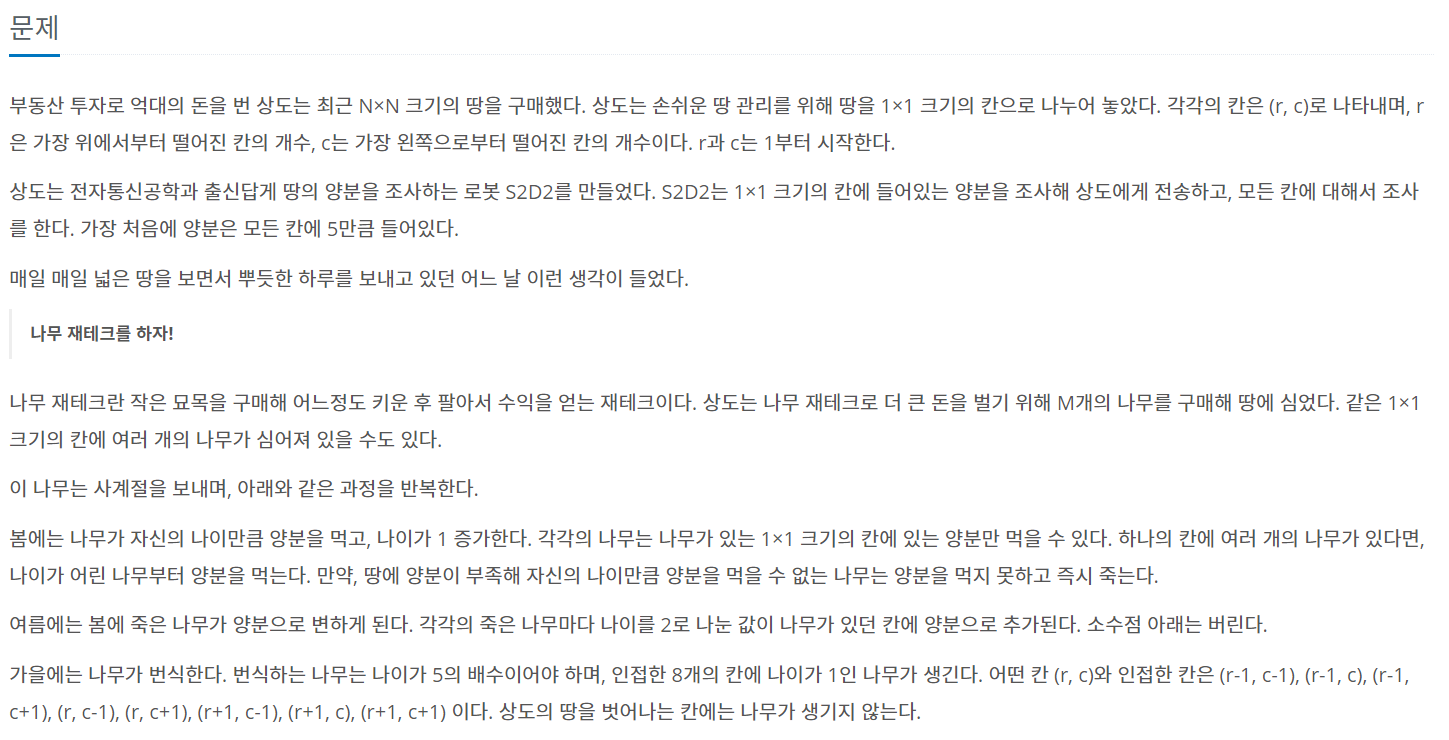 하지만 어린 나무부터 양분을 먹는 과정에서 리스트의 정렬이 시간초과를 야기하여 우선순위큐로 바꾸었다.