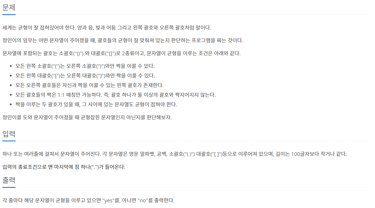 [백준 4949] 균형잡힌 세상 본문