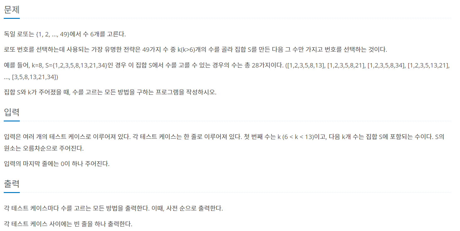 [백준 6603] 로또 본문