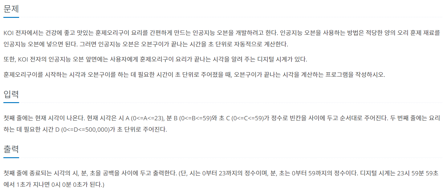 시, 분, 초가 각각 24, 60, 60 미만으로 되게 만들어주면 된다.