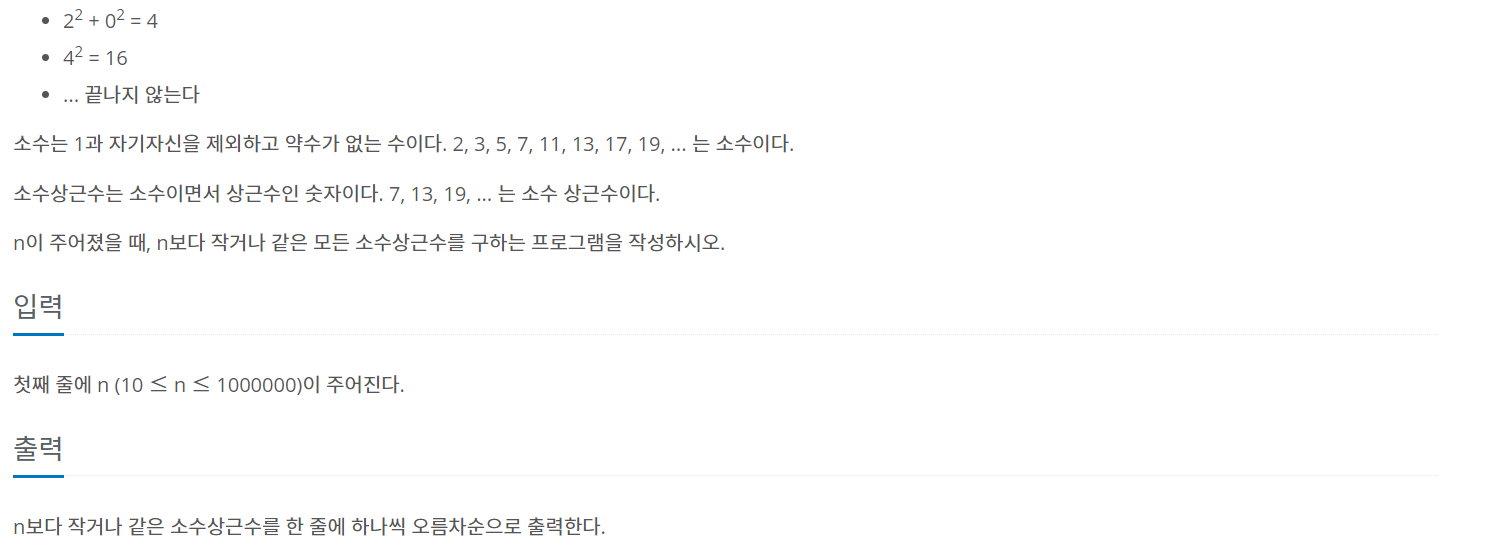 2는 상근수가 아님을 알려주어서 3부터 n까지의 소수상근수 계산을 수행했다.
