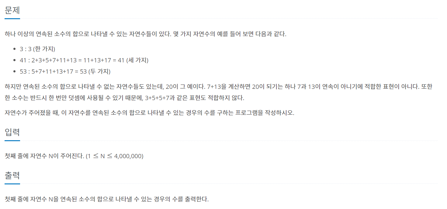 소수리스트를 만들어 놓고 투포인터 기법으로 수열의 합과 N을 비교한다.