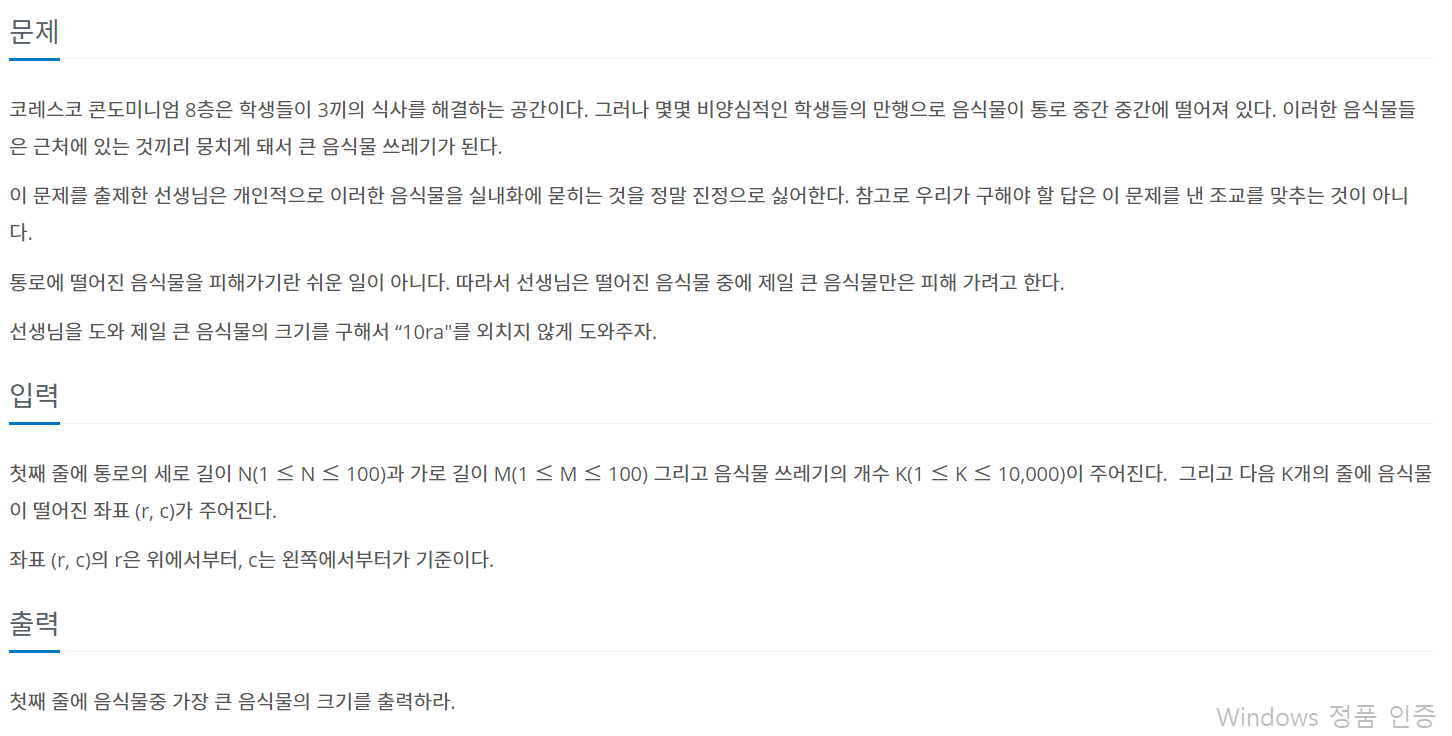 그래프 컴포넌트 중 가장 큰 컴포넌트의 크기를 구하는 간단한 문제이다.