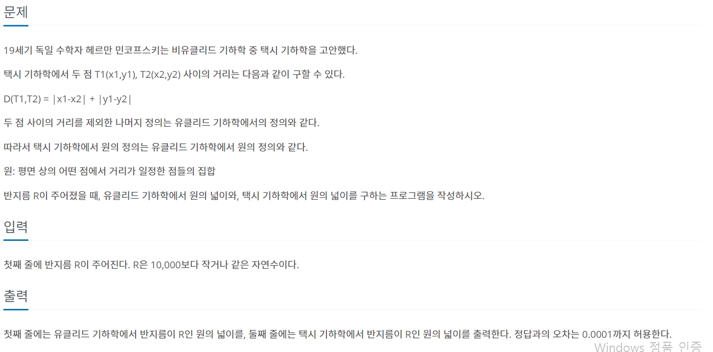 [백준 3053] 택시 기하학 본문