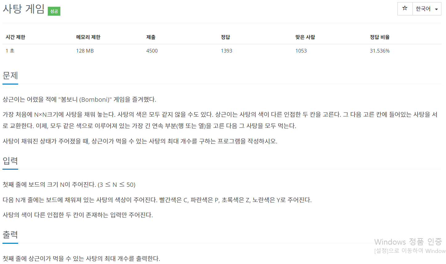 [백준 3085] 사탕 게임 본문