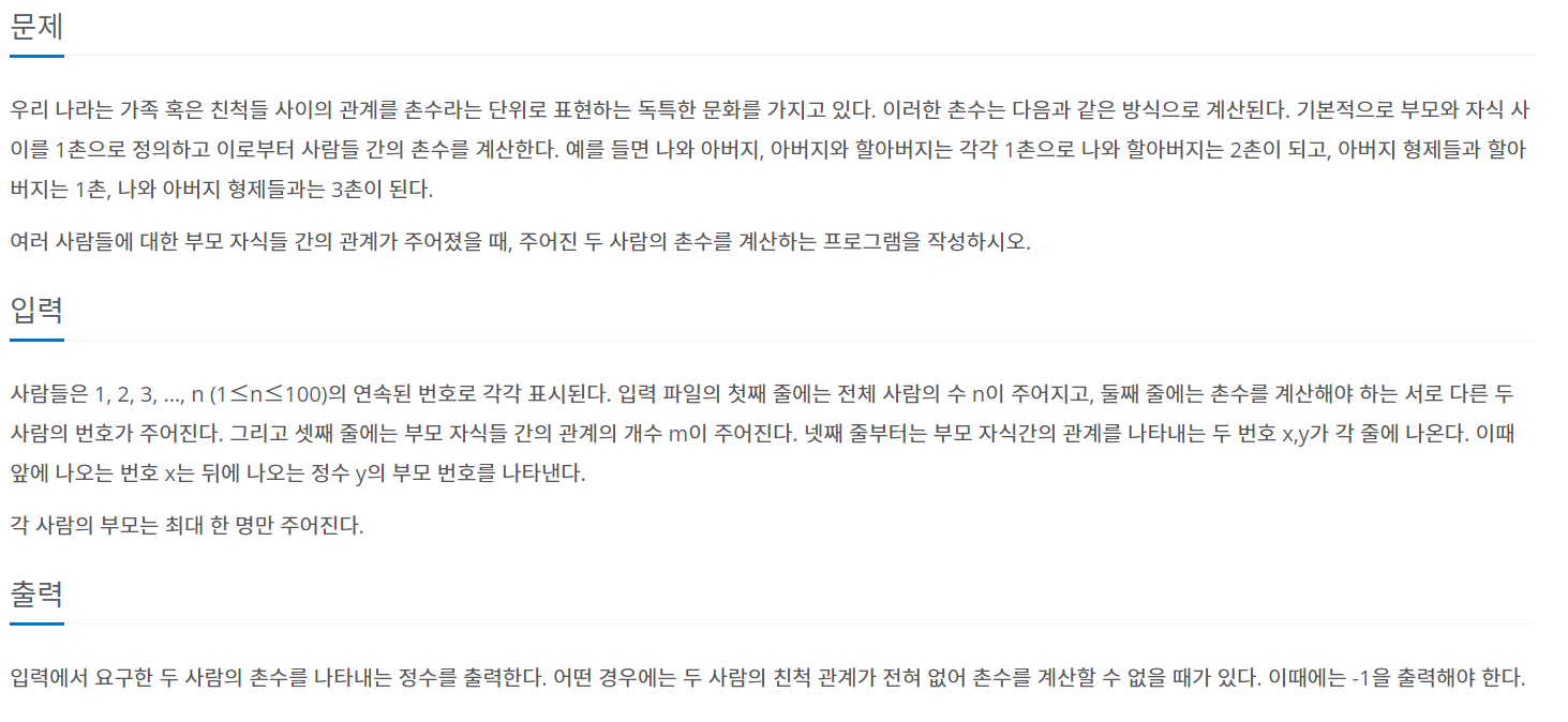 [백준 2644] 촌수계산 본문