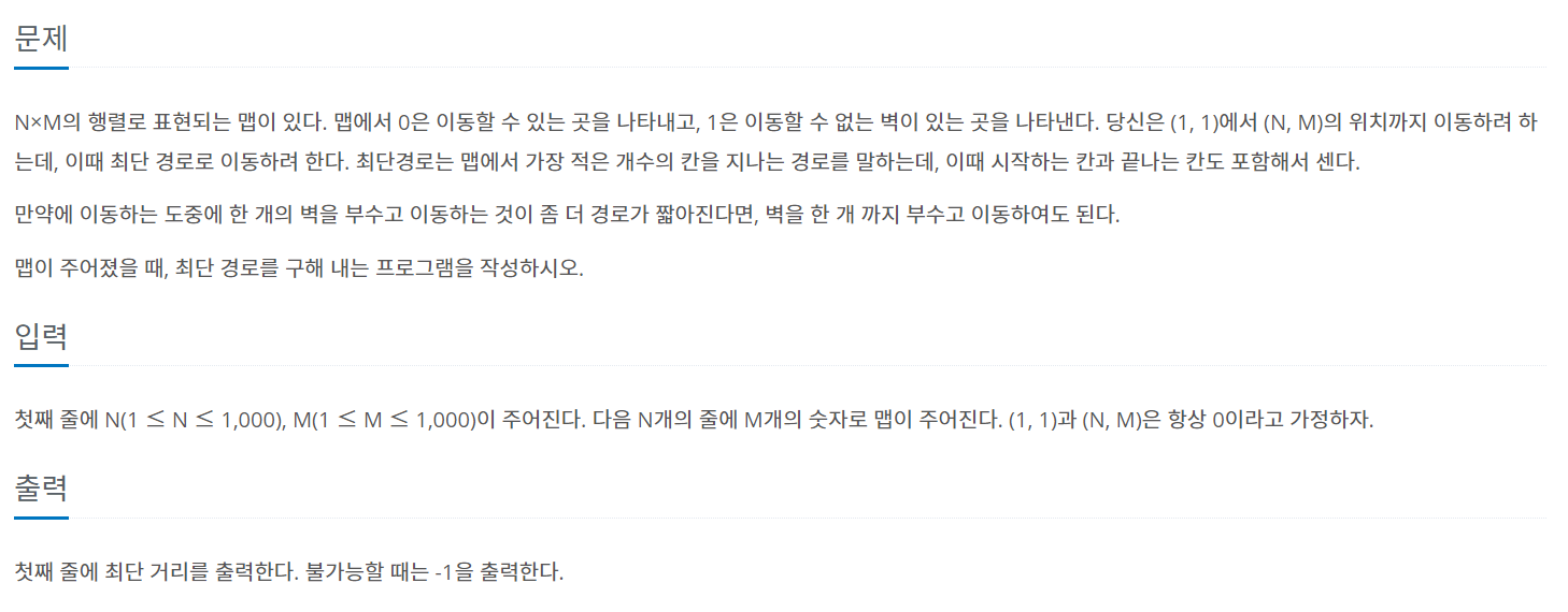 큐에도 벽 부수기에 대한 정보를 담아 한번 부수면 더이상 부술수 없게 한다.
