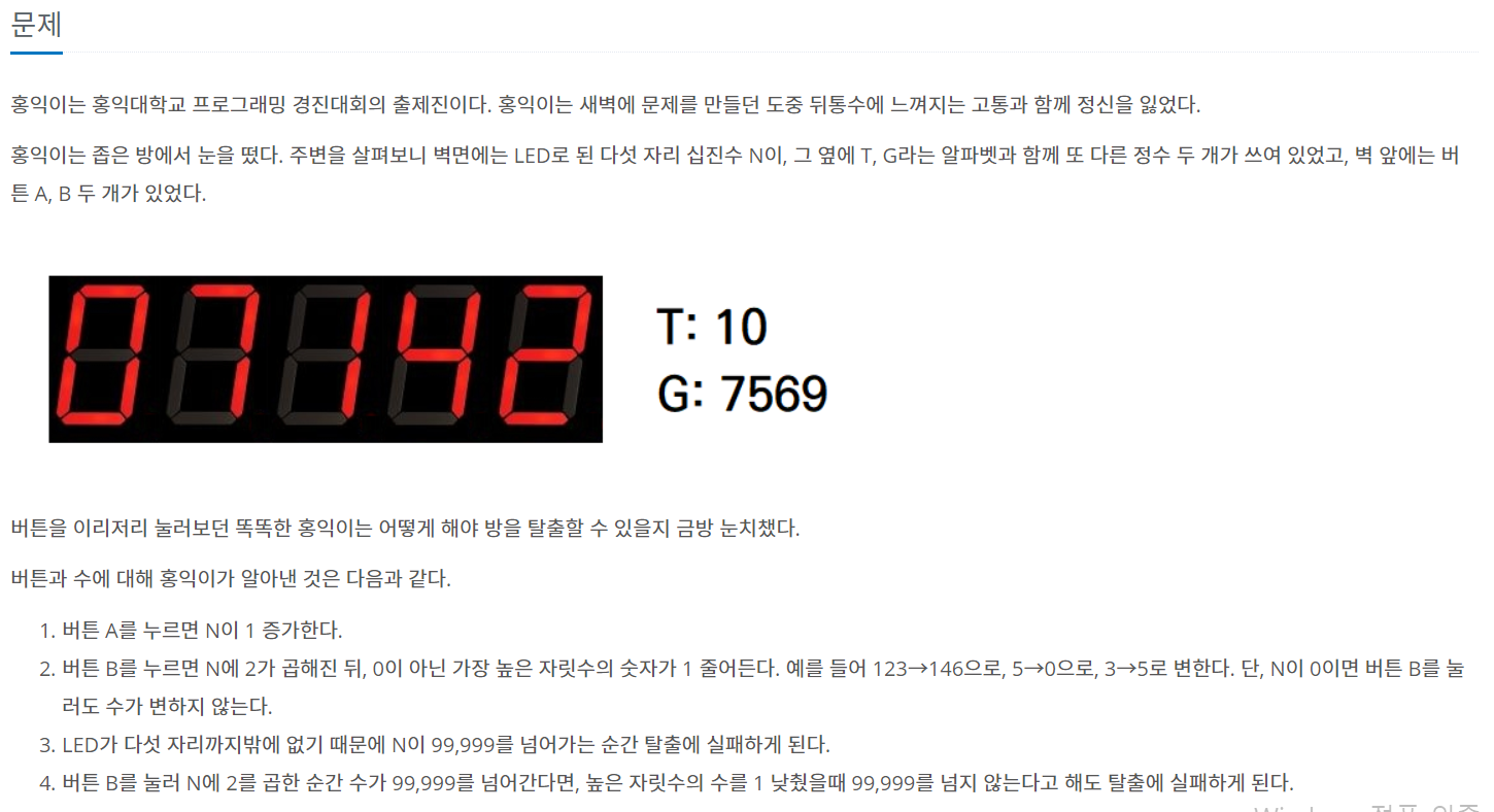 B 버튼을 눌러 2배가 되었을때 99999가 넘는다면 그 경우는 통과한다.