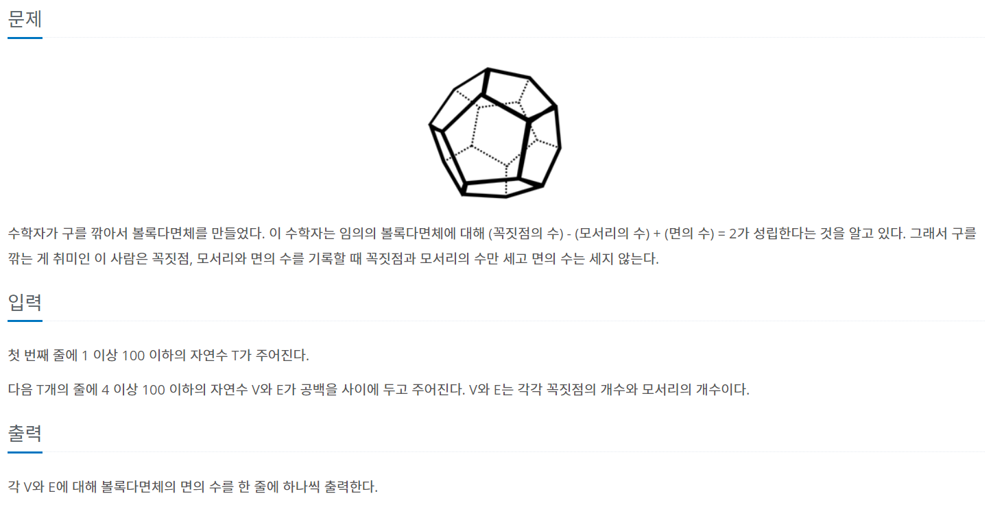 우리가 구해야 하는 것은 면의 수 이고 주어진 식을 활용하면 된다.