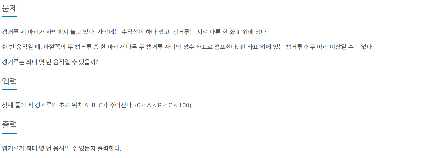 [백준 2965] 캥거루 세마리 본문